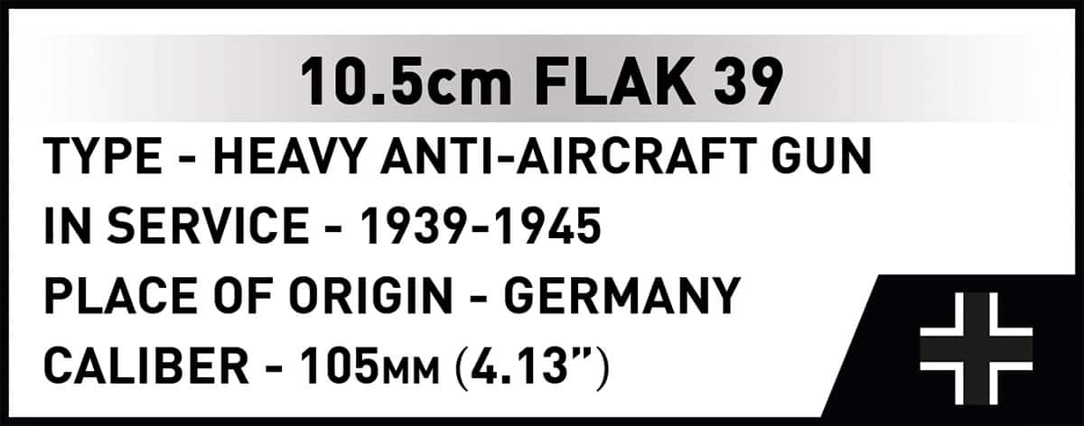 (Alt Text: COBI 3142 FLAK 39 historical technical diagram showing 10.5cm barrel elevation)