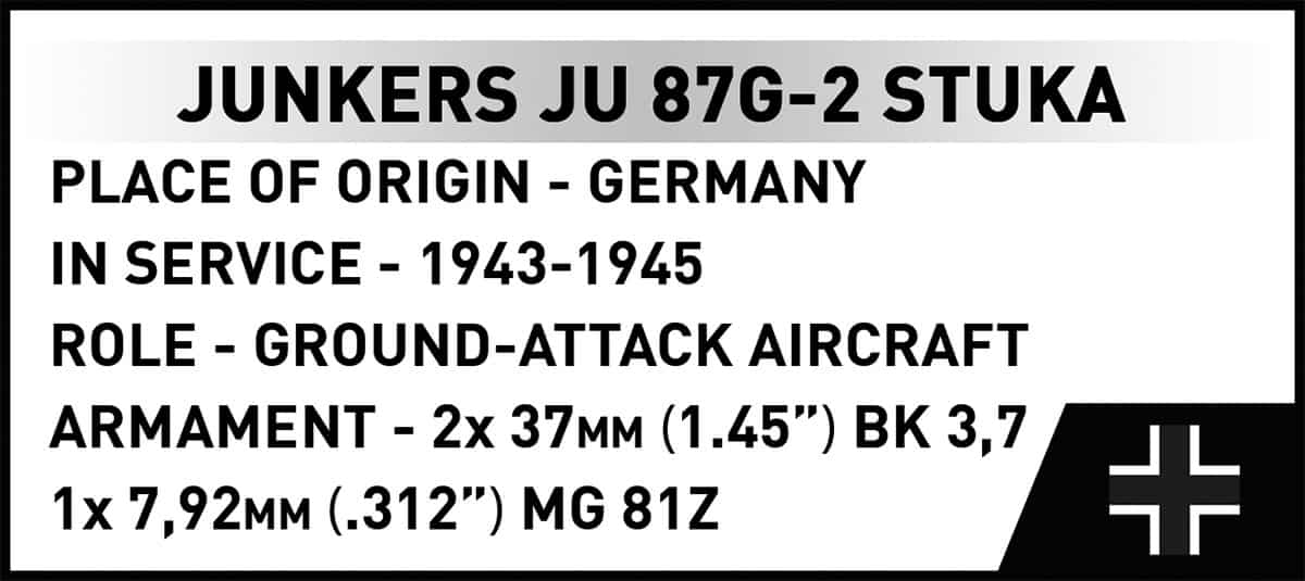 The Ju 87G-2 was born out of necessity as the tide turned during World War II. By 1943, Soviet armor dominance required a specialized response. The G-2 variant replaced traditional bombs with two 37mm Bordkanone BK 3,7 cannons mounted under the wings.