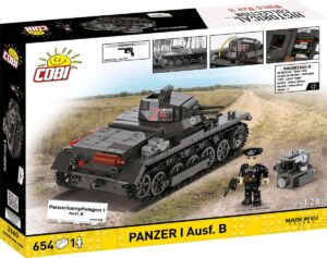 Build the COBI Panzer I Ausf.B #2660 in 1:28 scale with 654 high-quality bricks, a German Tank Commander figure, and detailed WW2-era features including a removable engine, pad-printed markings, and authentic weaponry.