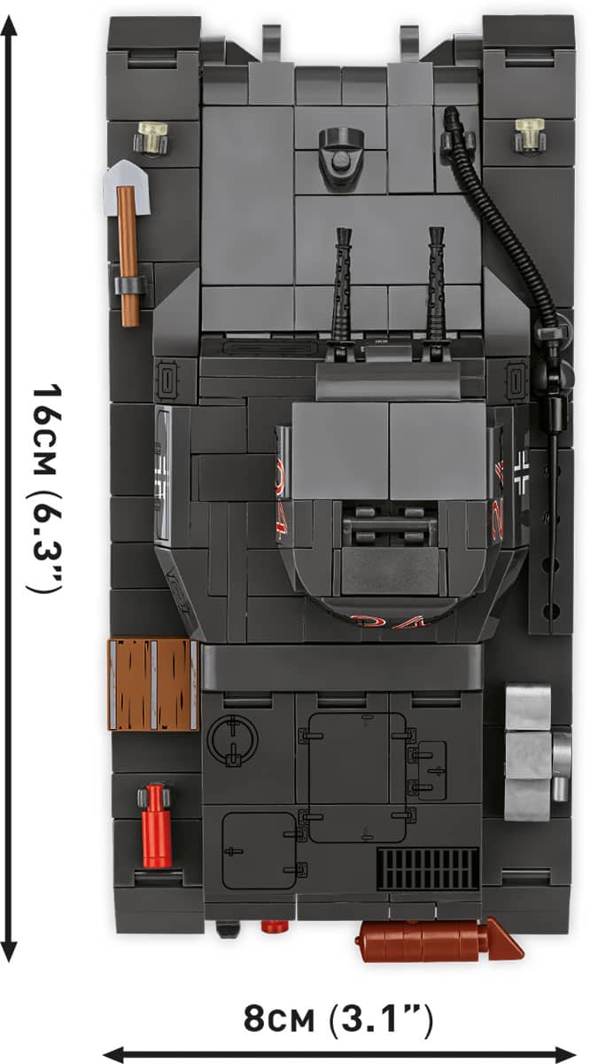 COBI’s brick-built model reflects this history with authentic details. The set includes pad-printed German markings—no stickers required. A removable engine reveals internal mechanical detail. A brick figure German Tank Commander is included, equipped with a Mauser C96 pistol for added authenticity.