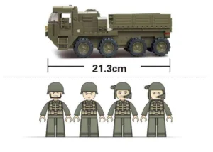 The Sluban Heavy Transporter (B0302) allows builders to recreate this icon of military engineering in a 1:35 scale format. However, this model represents more than just a static display item. The designers robustly crafted the chassis for active play. It handles rough terrain easily, mirroring the real-world vehicle’s reputation for durability.