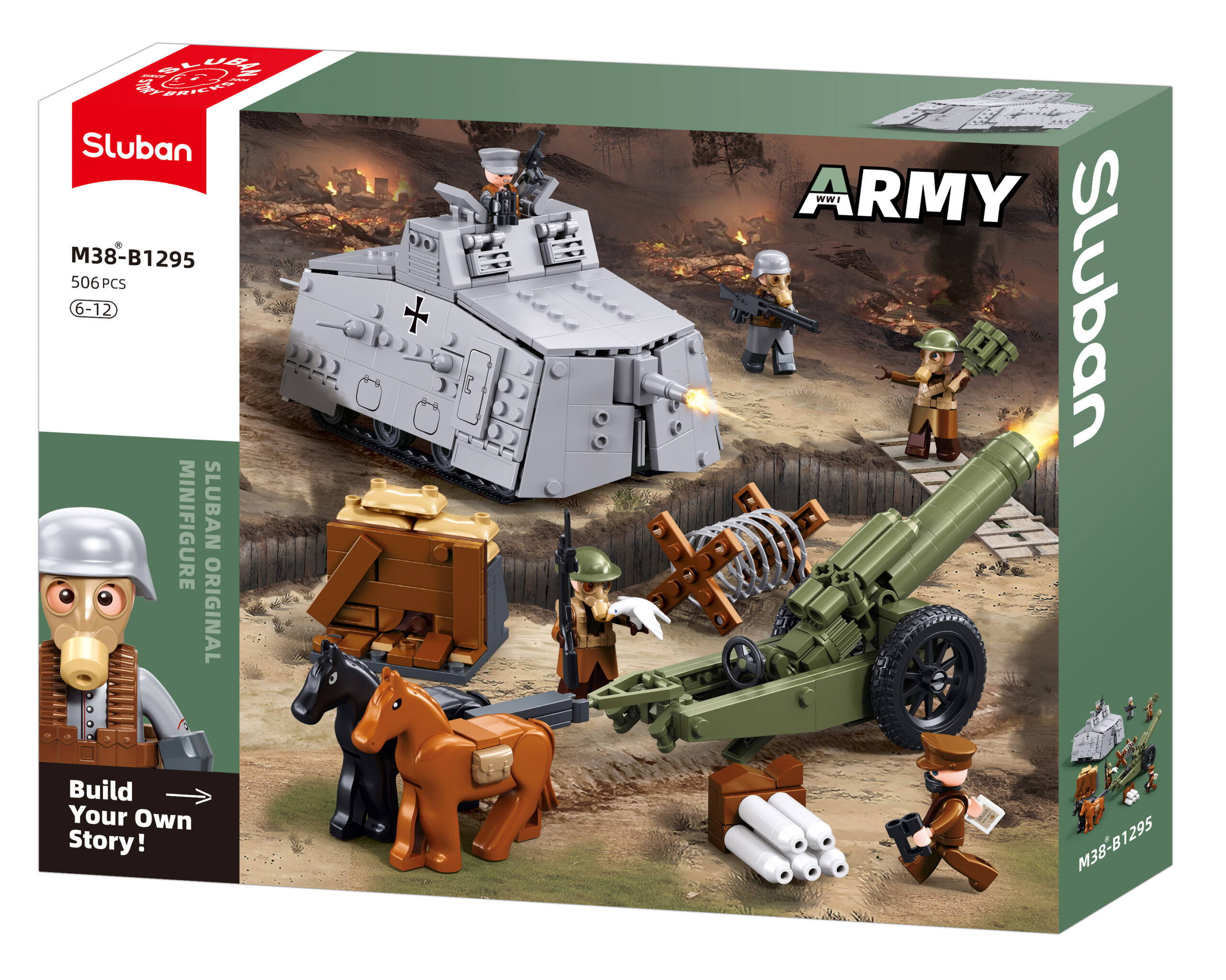 Sluban WW1 A7V German Tank: 506-Piece Battlefield Set | 1:35 Scale Replica (B1295)