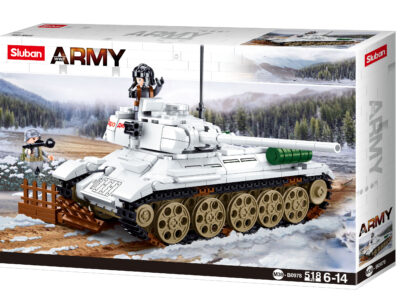 • Sluban WW2 T-34/85 Winter Camo Medium Battle Tank Set (518 Pcs) | (B0978)